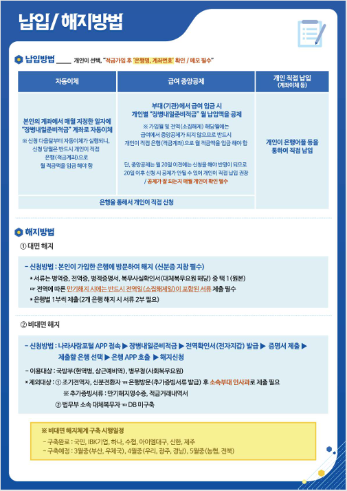 장병내일준비적금 납입/해지방법