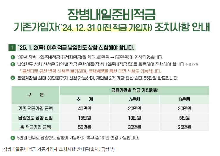 장병내일준비적금 기존가입자 조치사항
